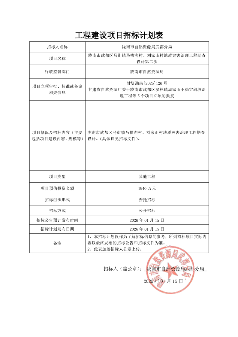 隴南市武都區(qū)馬街鎮(zhèn)馬槽溝村、劉家山村地質(zhì)災(zāi)害治理工程項目勘查設(shè)計第二次
